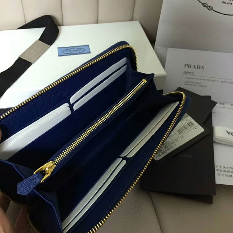 Prada Women saffiano leather wallet Come with serial numbers, Prada authenticity card, Prada dust bag, Prada Box and Prada care booklet.