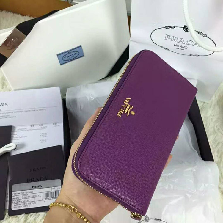 Prada Women saffiano leather wallet Come with serial numbers, Prada authenticity card, Prada dust bag, Prada Box and Prada care booklet.