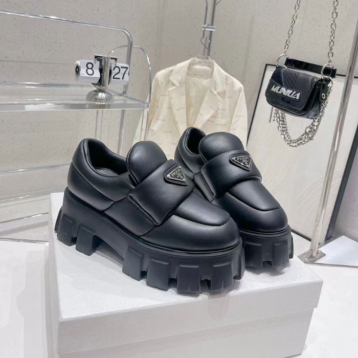 Prada shoes comes with a Prada Shoe box, Prada dust cover, Prada care booklet and Prada authenticity card. All markings and accessories are exact