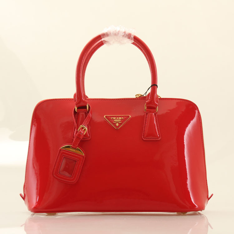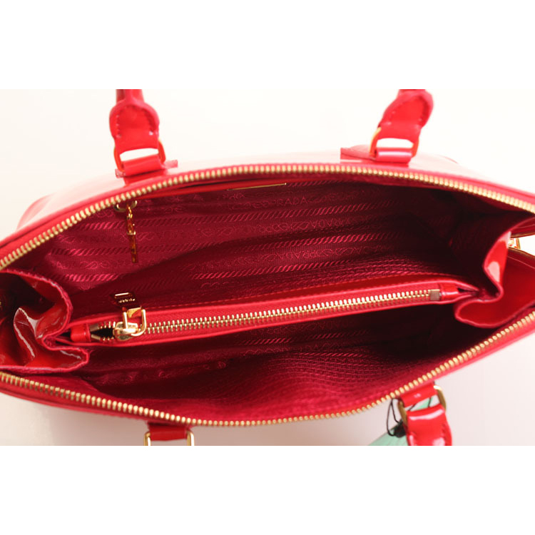 PRADA Patent Leather Two Handle Bag 0837 in Red