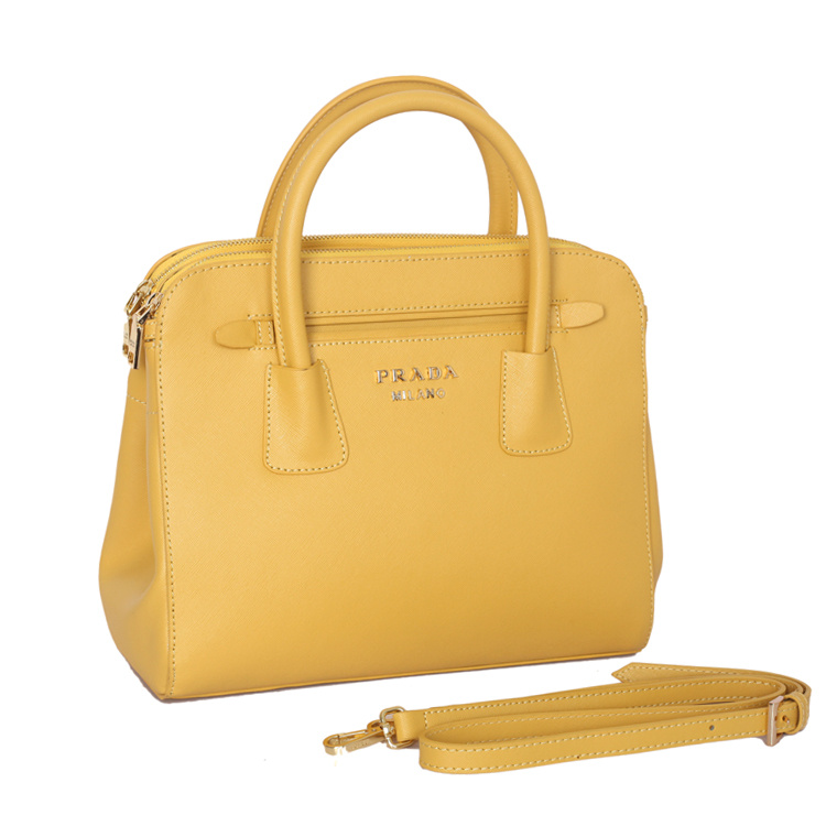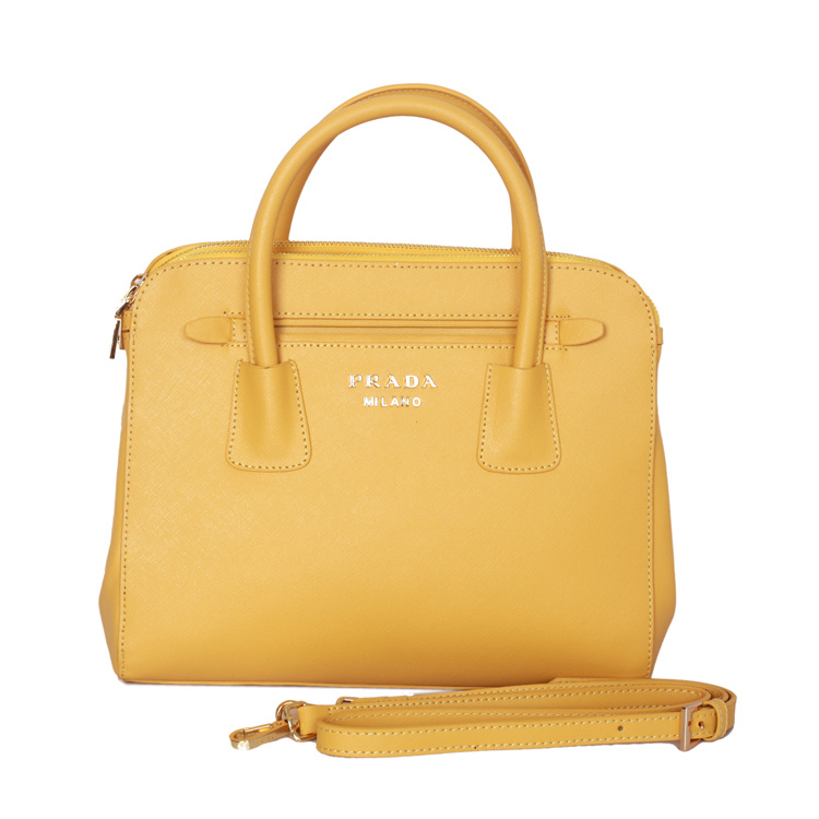 PRADA Saffiano Cuir and City Calf Leather Tote Bag BN2596 in Yellow