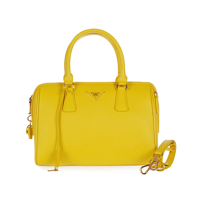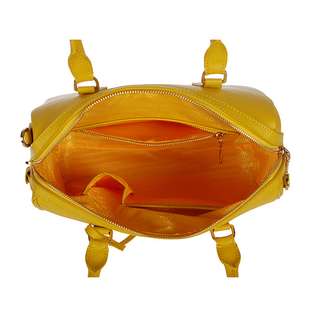 PRADA Saffiano Leather 30cm Two Handle Bag 1845 in Lemon yellow