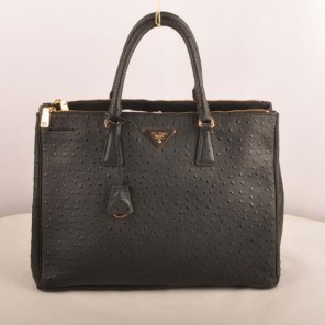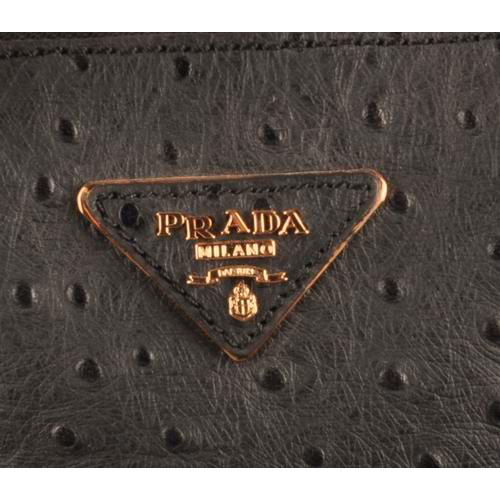 Prada Maxi Ostrich Leather Tote Bag Black