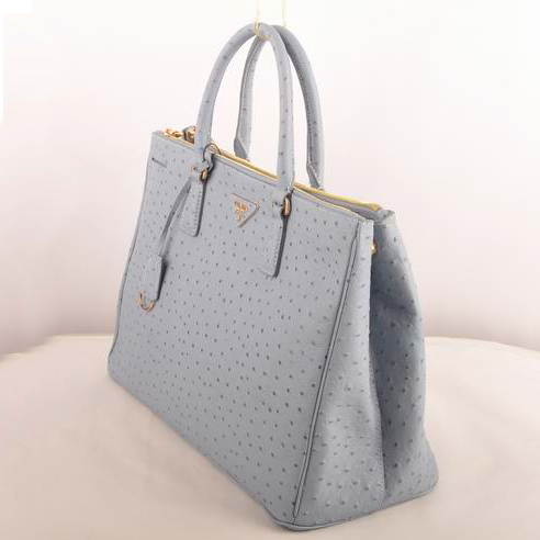 Prada Maxi Ostrich Leather Tote Bag Light Blue