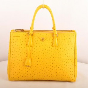 Prada Maxi Ostrich Leather Tote Bag Yellow