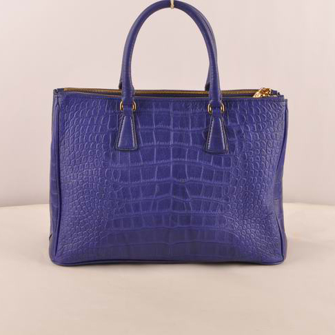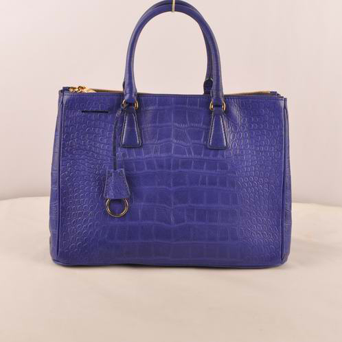 Prada Medium Croco Leather Tote Bag Blue