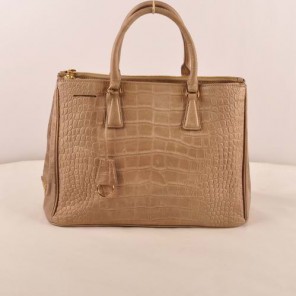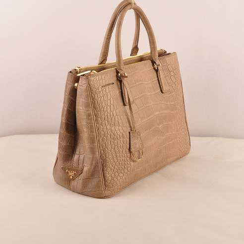 Prada Medium Croco Leather Tote Bag Brown