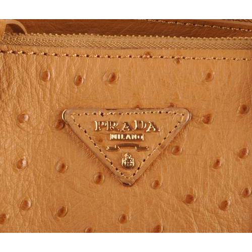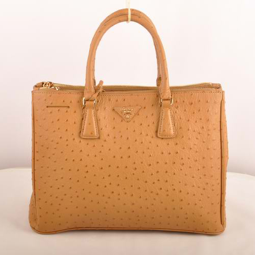 Prada Medium Ostrich Leather Tote Bag Apricot