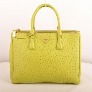 Prada Medium Ostrich Leather Tote Bag Lemon