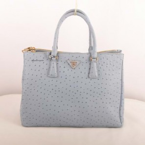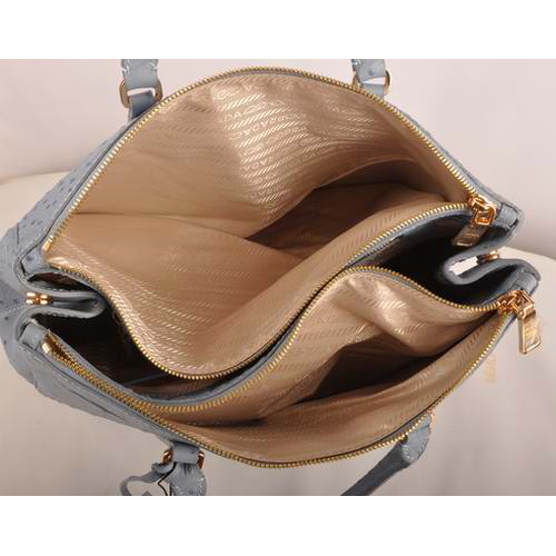 Prada Medium Ostrich Leather Tote Bag Light Blue