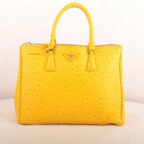 Prada Medium Ostrich Leather Tote Bag Yellow
