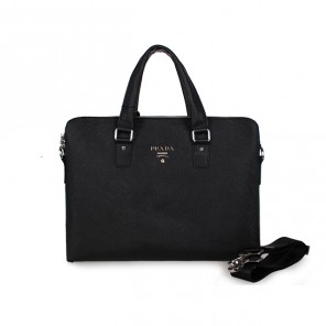 Prada Saffiano Calf Leather Briefcase 95512 in Black