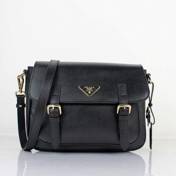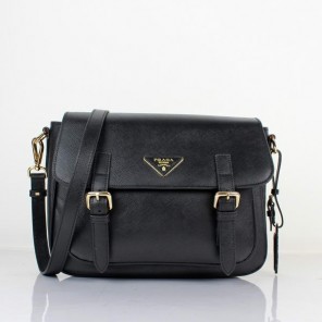 Prada Saffiano Calf Leather Flap Bag BT0904 in Black