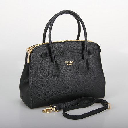 Prada Saffiano Cuir Leather Tote Bag 10337 in Black