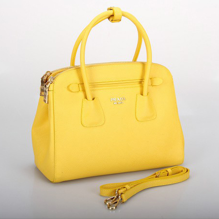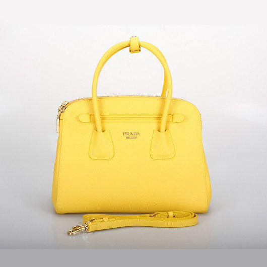 Prada Saffiano Cuir Leather Tote Bag 10337 in Yellow