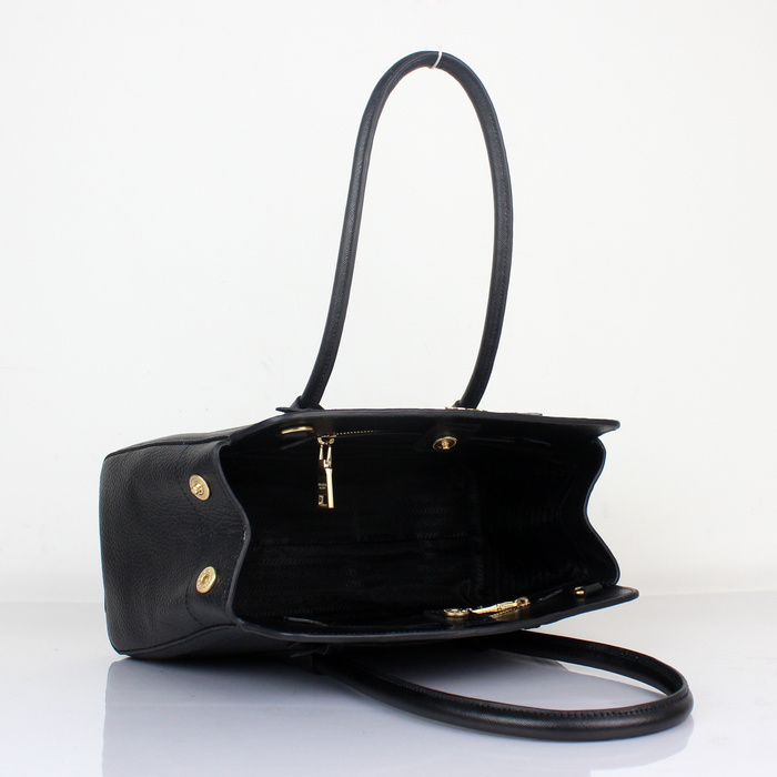 2013 Prada Saffiano Cuir and City Calf Leather Tote Bag BN2602 in Black come with: serial numbers, care booklet, Prada dust bag, Prada Card, tag.