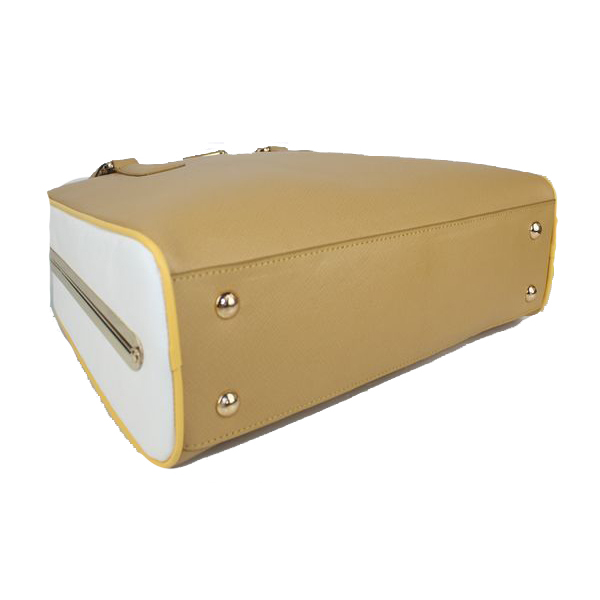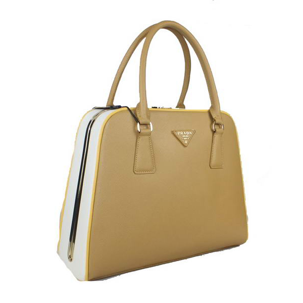 Prada Saffiano Leather Medium Tote Bag BL5018 Apricot&White