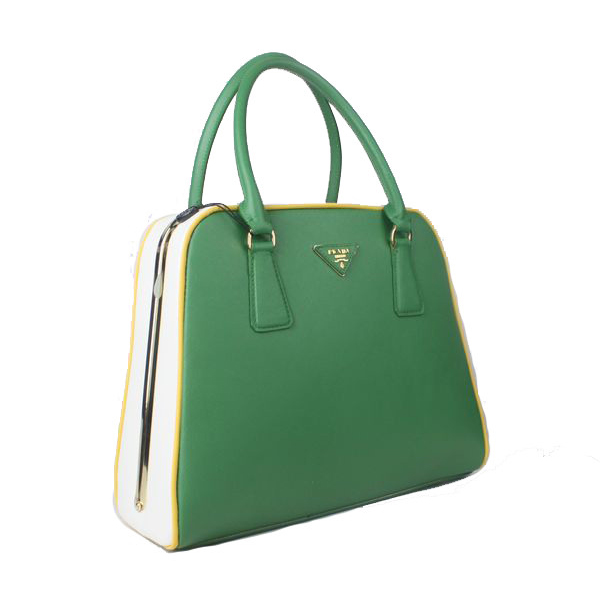 Prada Saffiano Leather Medium Tote Bag BL5018 Green&White