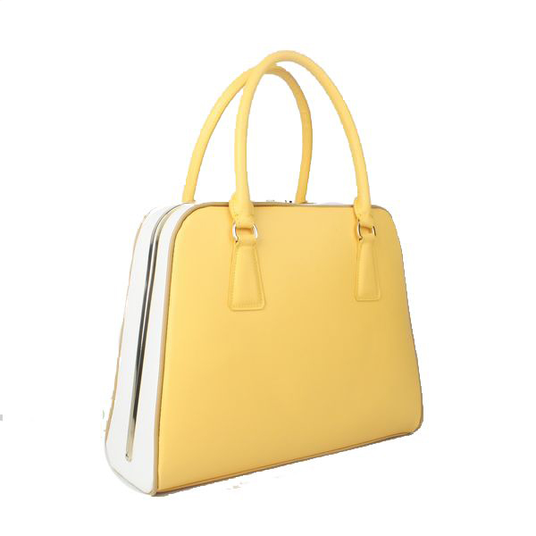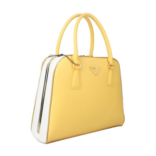 Prada Saffiano Leather Medium Tote Bag BL5018 Yellow&White