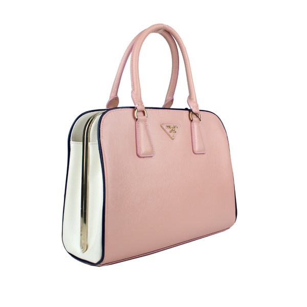 Prada Saffiano Leather Tote Bag 21267 Pink&White