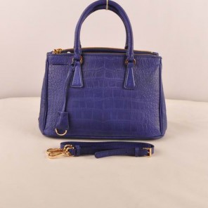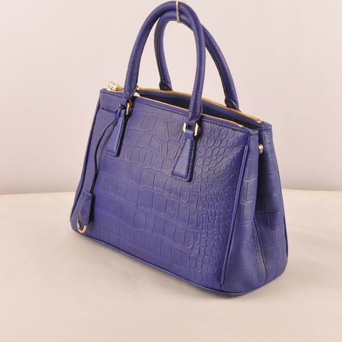 Prada Small Croco Leather Tote Bag Blue