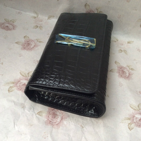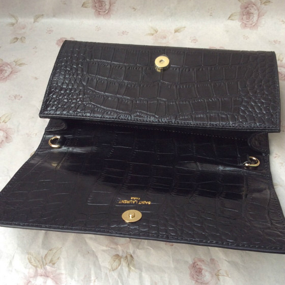 2016 YSL Classic Monogramme Clutch Bag Croco 311212 Black