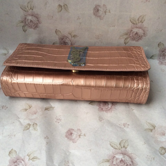 2016 YSL Classic Monogramme Clutch Croco 311212 Gold