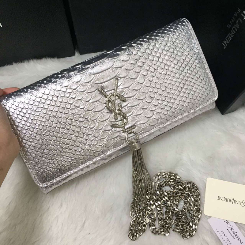 2016 YSL Dinner clutch shoulder bag 311288 Silver with Silver