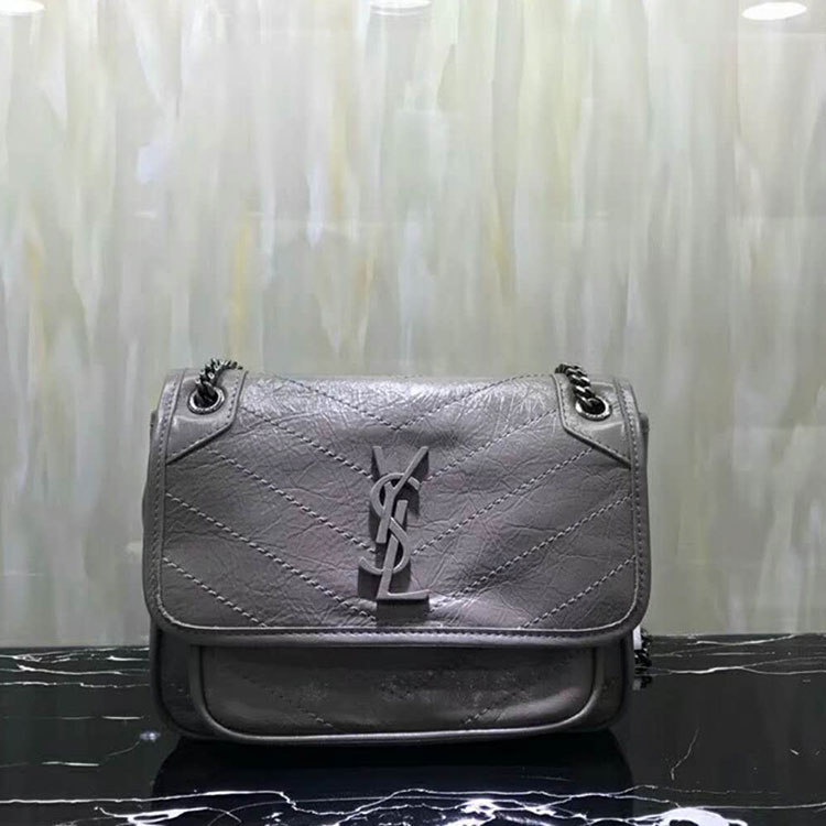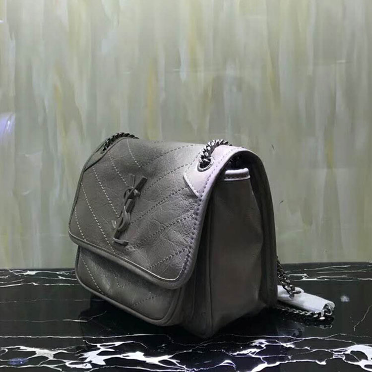 2018 YSL Baby Niki Chain Bag in Crinkled Quilted Leather