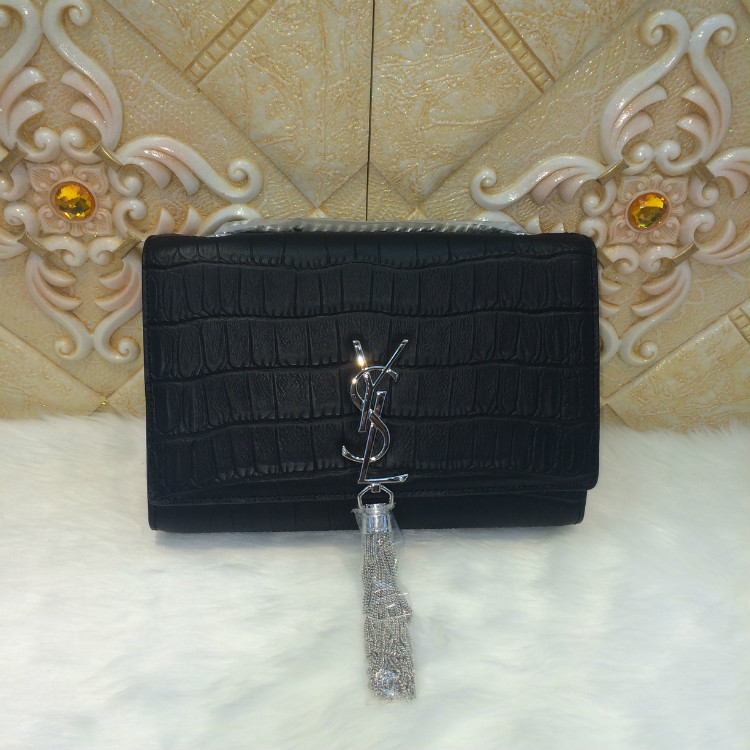 - CROSS-BODY SHOULDER BAG WITH INTERLOCKING METAL YSL SIGNATURE AND CHAIN METAL TASSEL.