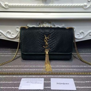 - CROSS-BODY SHOULDER BAG WITH INTERLOCKING METAL YSL SIGNATURE AND CHAIN METAL TASSEL.