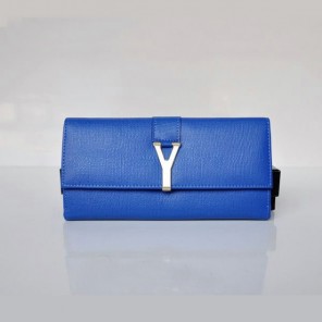 Yves Saint Laurent Large Y Line Flap Wallet 241175 Blue