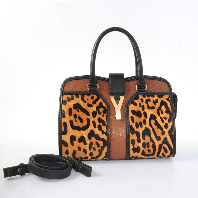 Yves Saint Laurent Small Cabas Chyc Bag 8220 Earth yellow with leopard