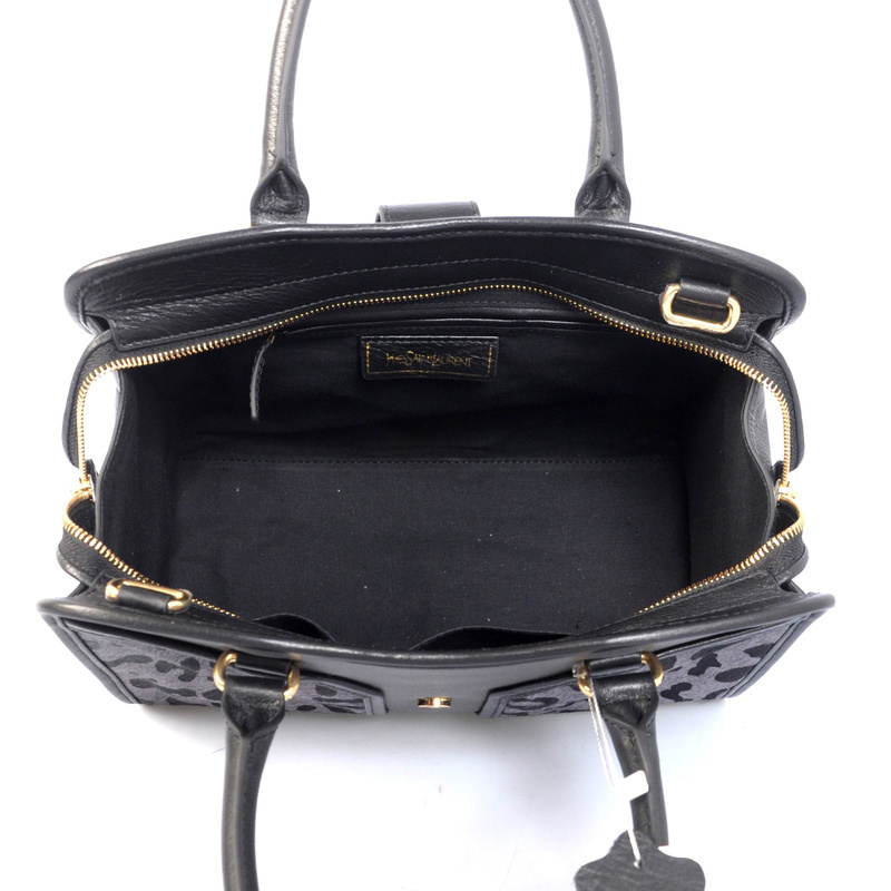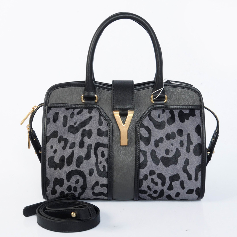 Yves Saint Laurent Small Cabas Chyc Bag 8220 Gray with leopard