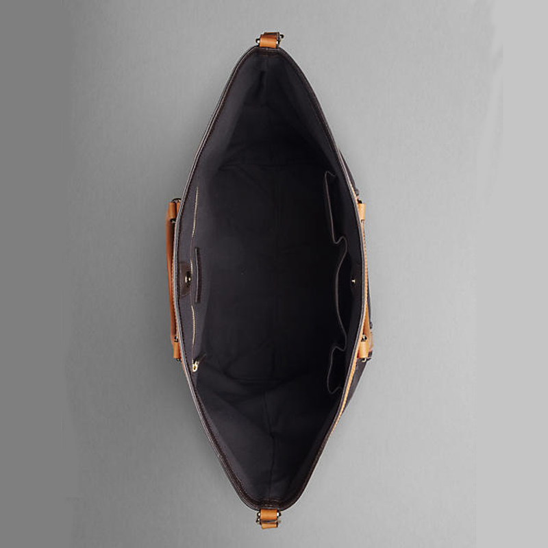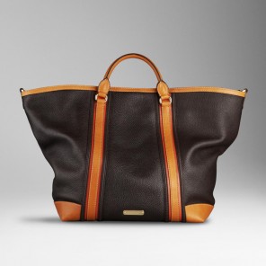 Grainy leather tote bag with contrast leather trim