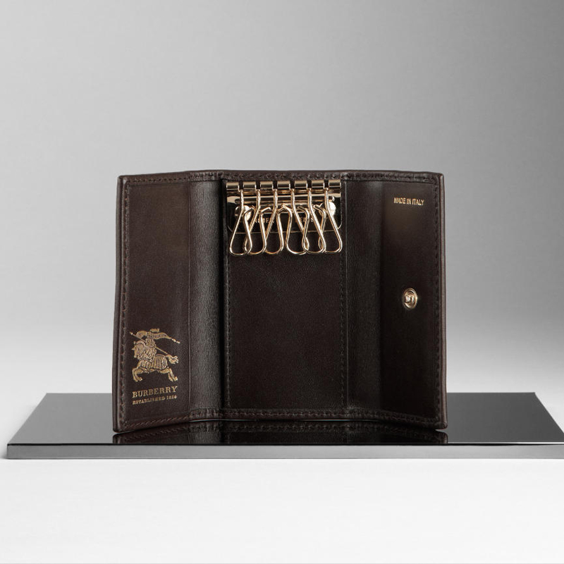 - One snap button closure, six polished brass key rings