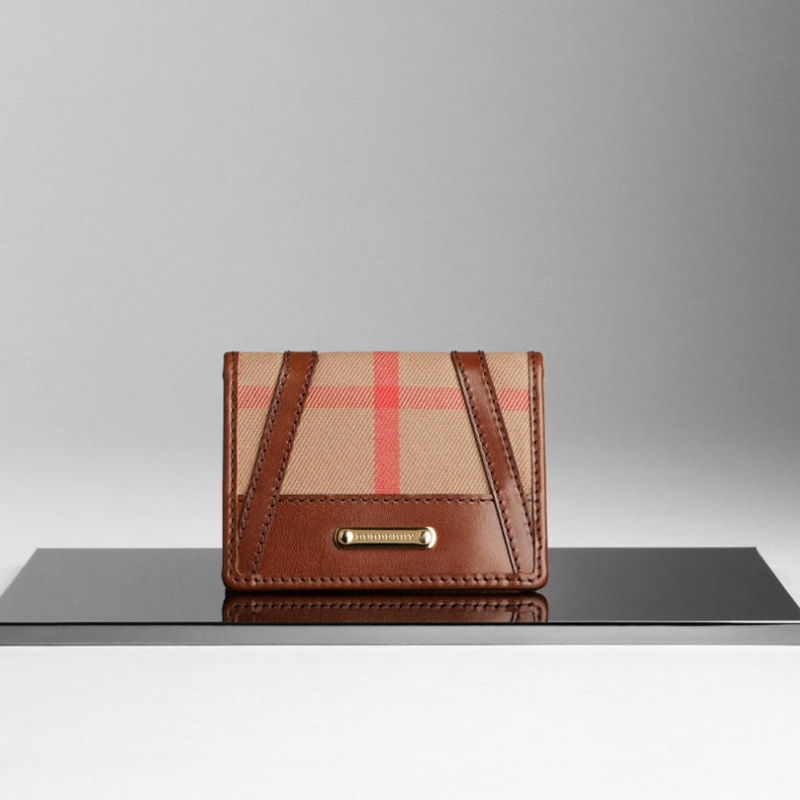 - House check cotton folding ID card case- Soft bridle leather trim- ID slot and card slots- 100% cotton