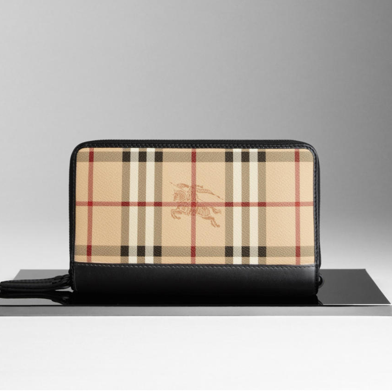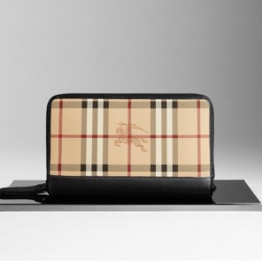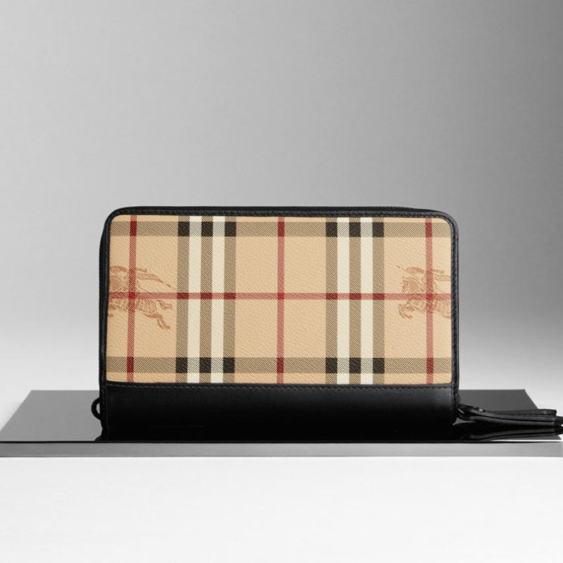 - Haymarket check coated canvas travel wallet with soft leather trim