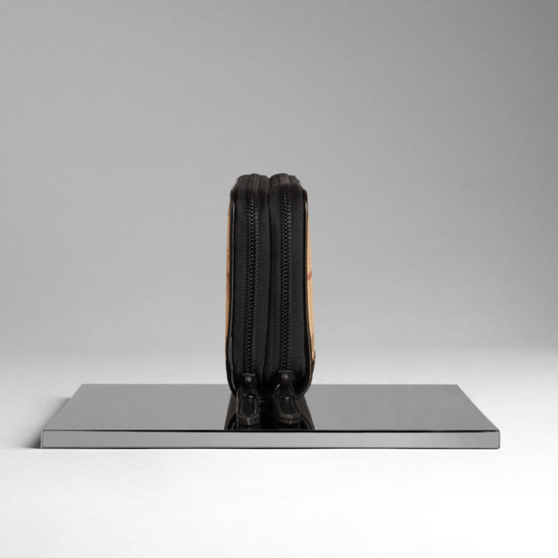 - Double ziparound closure with leather zip pulls