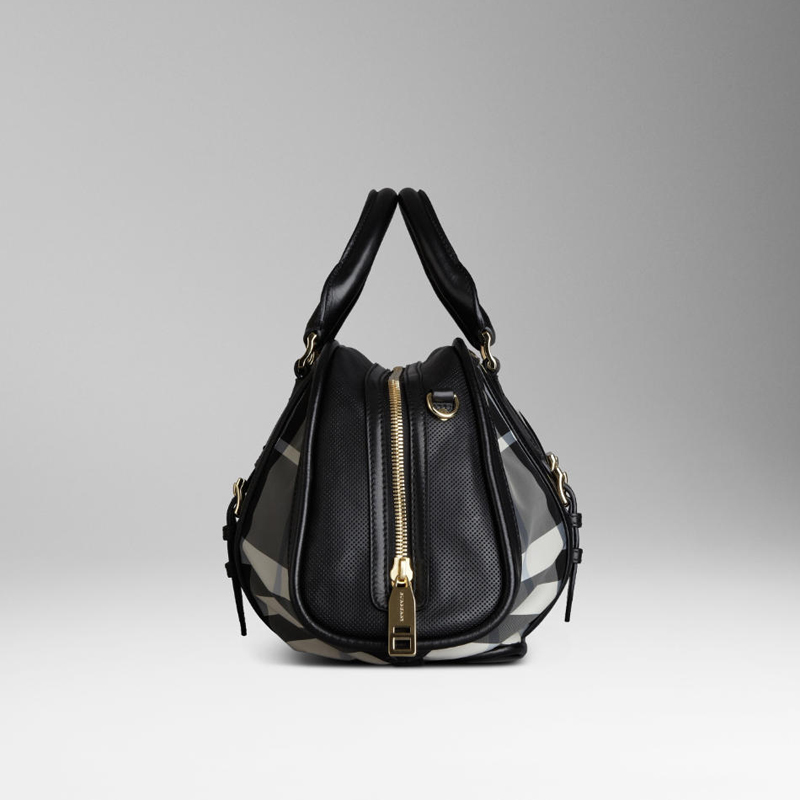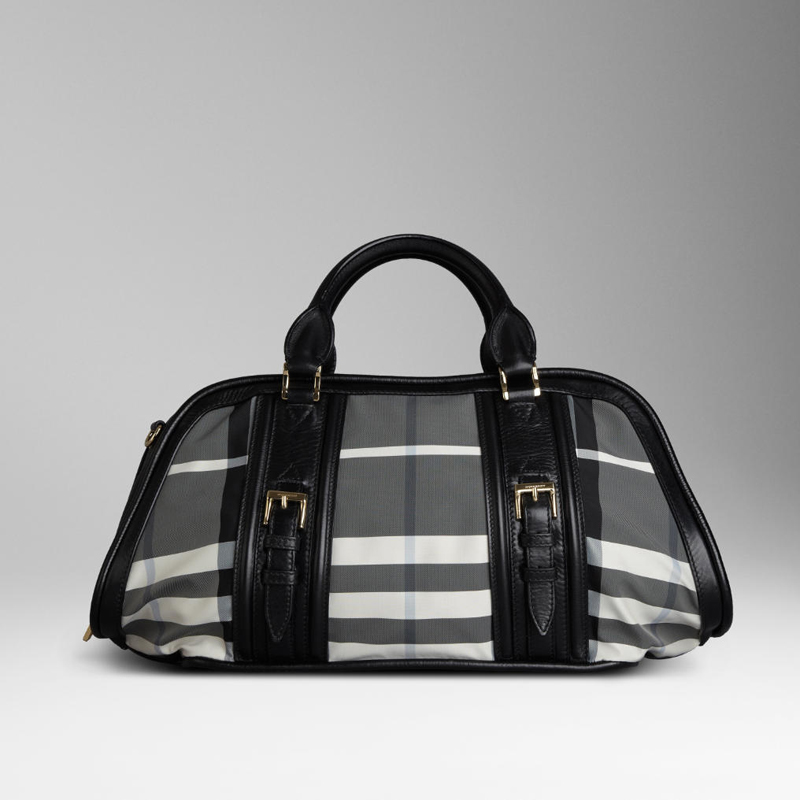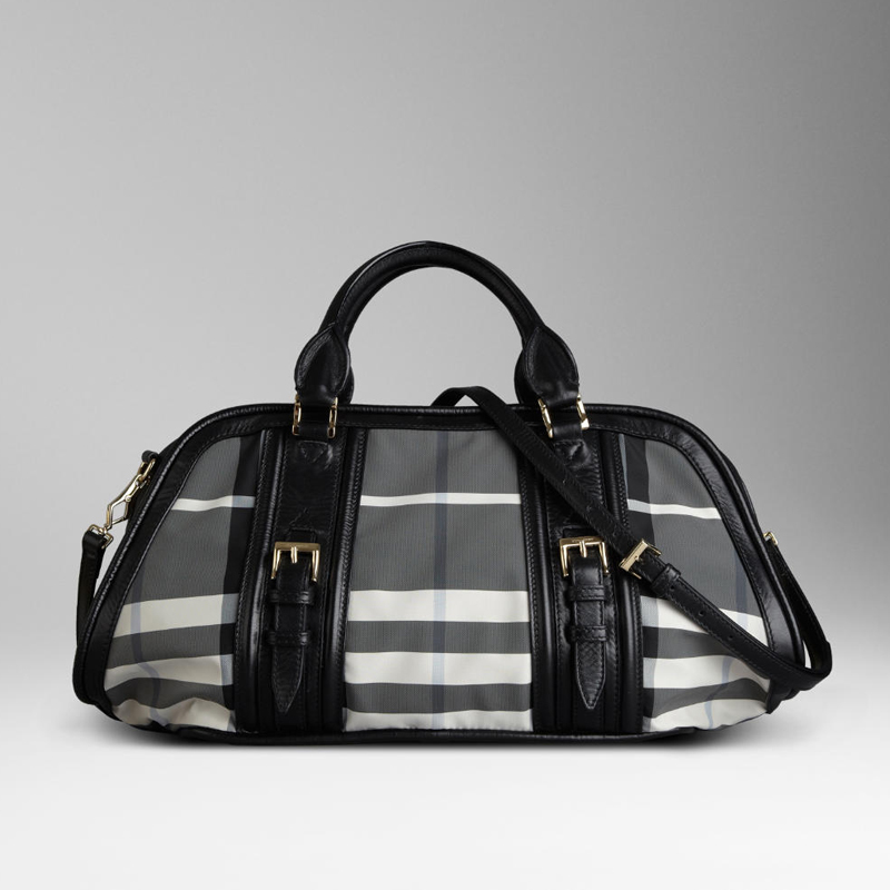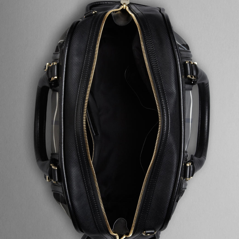 Charcoal check bowling bag with leather trim