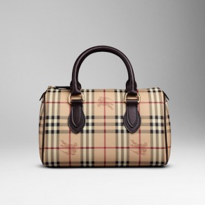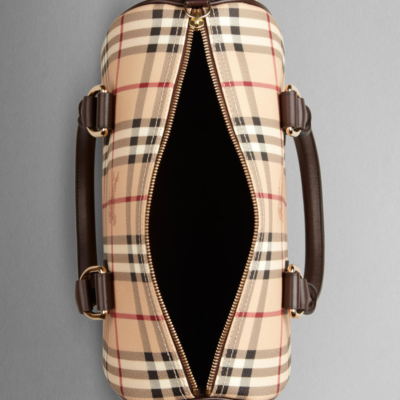 Haymarket check coated canvas bowling bag with smooth leather trims and piping