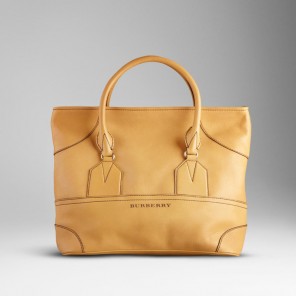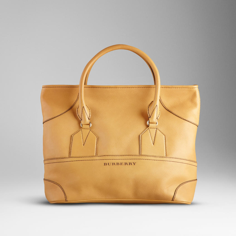 Structured leather tote bag with contrast stich details