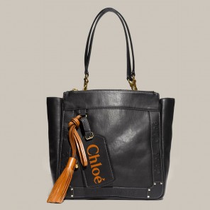 Roomy coated-canvas tote branded with subtle embossing is finished with a dangling leather tassel and logo-detailed luggage tag at one side.