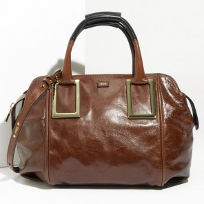 Rich, glazed leather distinguishes a slouchy top handle satchel detailed with sophisticated goldtone hardware and topped with rolled bi-color handles. An optional crossbody strap provides a convenient carrying option.