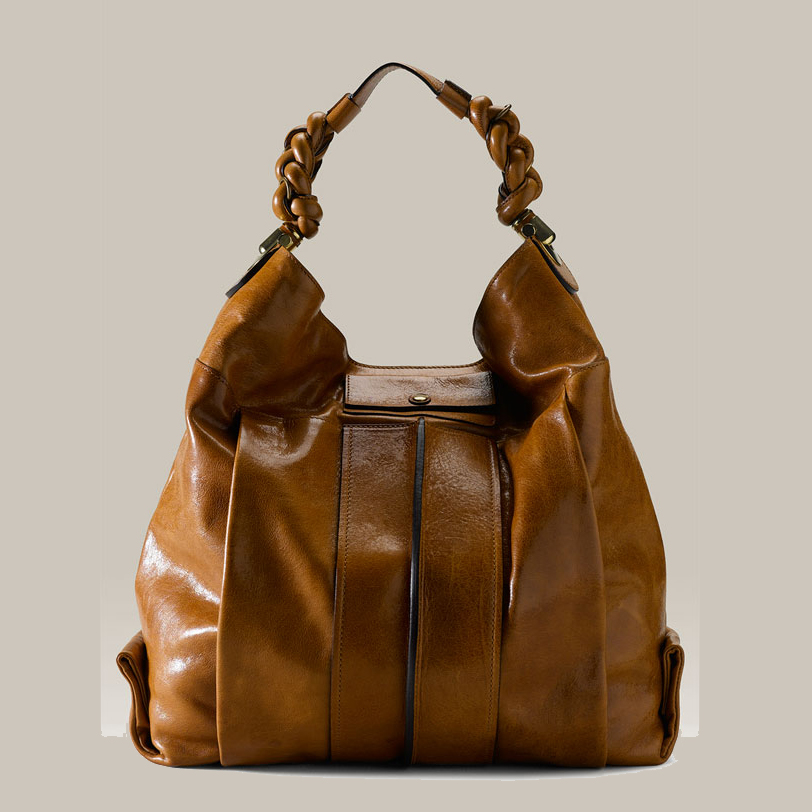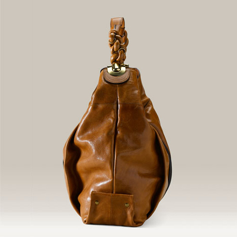Thickly twisted accents detail the strap of a slouchy hobo crafted from subtly distressed, supple leather. Soft front pleats enhance the easy shape of the chic bag, topped with a small snap-flap pocket.