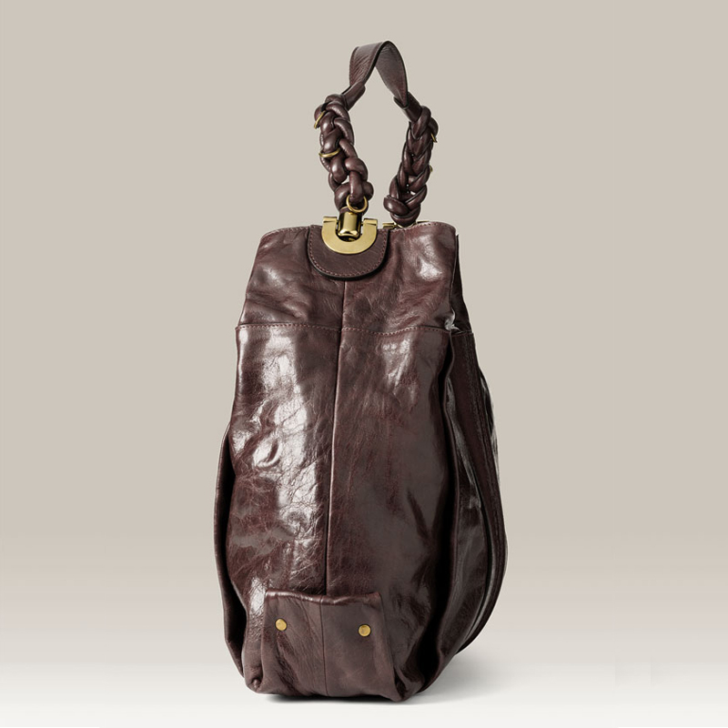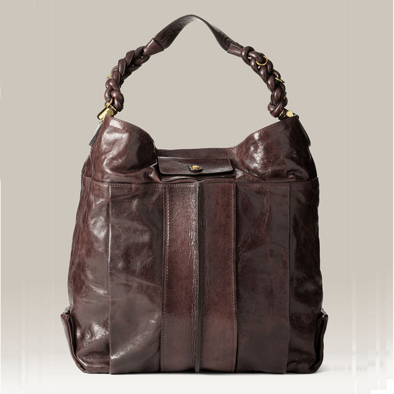 Thickly twisted accents detail the strap of a slouchy hobo crafted from subtly distressed, supple leather. Soft front pleats enhance the easy shape of the chic bag, topped with a small snap-flap pocket.