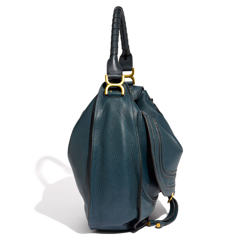 Textured, curvy flap鈥攂randed by subtle embossing鈥攃onceals a front pocket in a neutrally hued leather satchel with a distinctively wrapped handle.