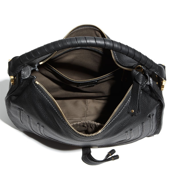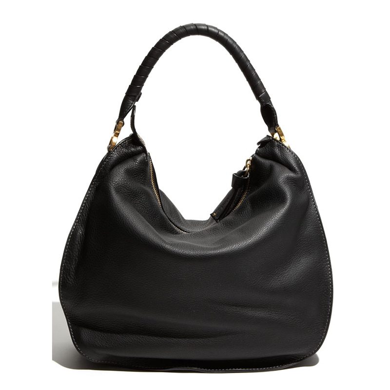 Textured, curvy flap鈥攂randed by subtle embossing鈥攃onceals a front pocket in a soft leather satchel with a distinctively wrapped handle.
