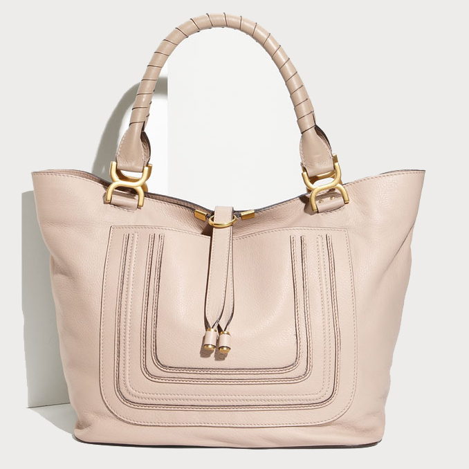 Subtle embossing embellishes the front pocket of a sophisticated tote crafted from lightly pebbled leather and topped with wrapped handles.