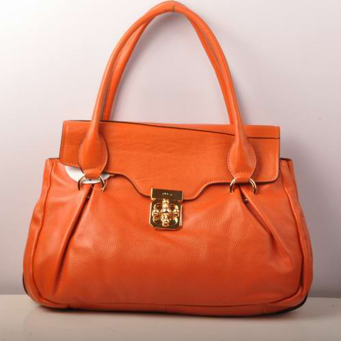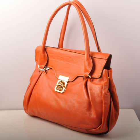 The color and the design are both enough to draw the attention of many fashion-inclined women. Cowhide leather satchel-shaped exterior with flip-over flap and fancy polished brass turnlock and two rounded handles attached by brass ringlets.